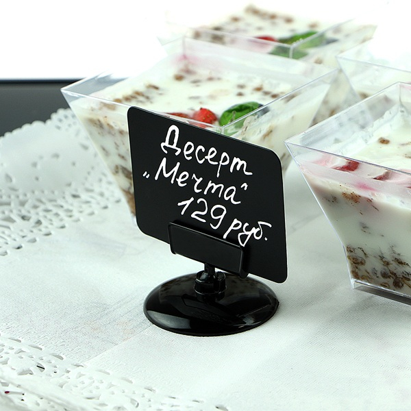 Вставка в рамки из плотного чёрного пластика для нанесения надписей белым маркером на меловой основе. Рекомендуется использовать со специальными меловыми маркерами , представленными в нашем каталоге. Толщина табличек - 0,5 мм. Углы таблички закруглены.