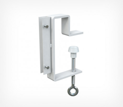Струбцина CLAMP HOLDER-L90 с вертикальным держателем вывесок — это струбцина с вертикальным П-держателем вывесок. Позволяет закрепить сегментационные разделители толщиной до 6 мм перпендикулярно торцу полки. Материал: металл. Толщина вставки: до 6 мм. Толщина полки: до 37 мм. Цвет: белый. Вывеска фиксируется в струбцине двумя потайными прижимными винтами. Подходит для крепления на полки толщиной до 40 мм.