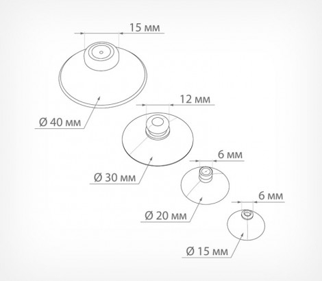 Присоски силиконовые D 15, 20, 30, 40 мм универсальные