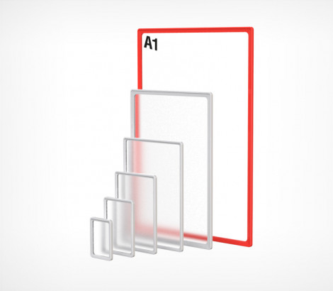 Комплект настенной перекидной системы «Рейка» с рамками «PF», для размещения информации формата А-1. Вертикально или горизонтально. Информация легко меняется.