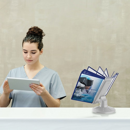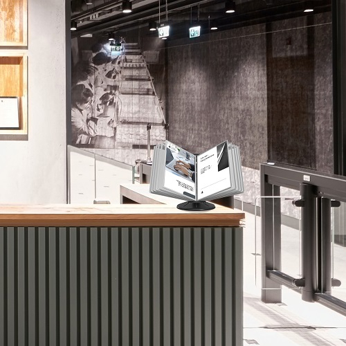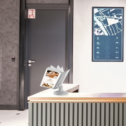 Комплект настольной вращающейся перекидной системы. Для размещения информации формата А-4 вертикально. Устойчивая демосистема, легко меняет положение наклона рамок, оснащена поворотным блоком. Информация легко меняется.