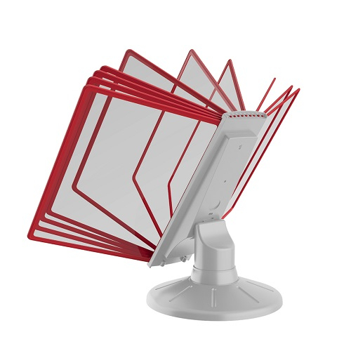 Комплект: настольное основание, изготовлено из металла и пластика, 10 РАМ формата А-4 с встроенным защитным протектором, индивидуальная упаковка.