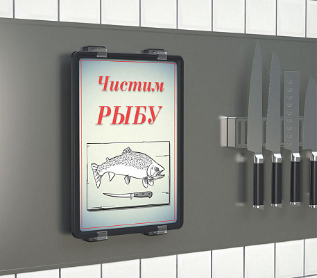 Магнитный держатель рамки под углом 0° к поверхности. Используется для вертикального крепления пластиковых рамок на металлических поверхностях. Рекомендуется использовать по 2 магнитных держателя для крепления каждой рамки.