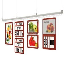 Подвесные системы позволяют использовать торговую площадь магазина максимально эффективно. Именно подвешивание профилей с информационными или рекламными плакатами может обеспечить удобное и быстрое информирование потребителей. Такие системы привлекают внимание за счёт своих размеров и ярких цветов.