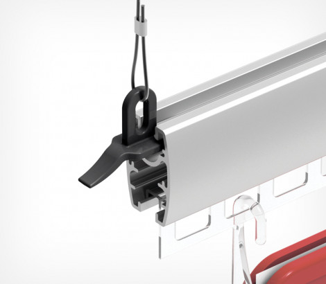 Пластиковый крючок-петля UNI-LOOP-P крепится в верхнем пазе профиля UNITRACK. Крючок-петля UNI-LOOP передвигается по всей длине профиля, что обеспечивает простоту использования и регулировку подвешивания профиля. Рекомендуется использовать по 2 крючка-петли на профиль при общем весе профиля с подвешенными рамками или плакатом до 5 кг.