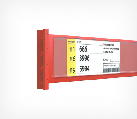 Универсальный самоклеящийся ценникодержатель DBR высотой 73 мм применяется для демонстрации информации на ценниках крупным шрифтом для перечисления большого количества характеристик товара.