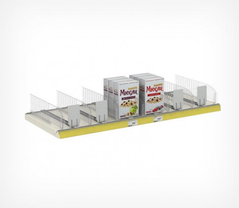 Расширитель позволяет использовать пружинный толкатель с товарами в упаковке большого размера. Надевается на заднюю опору толкателя шириной 40 мм. Имеет два варианта положения к поверхности полки: под углом 90° и 75°. Положение с наклоном используется с товарами в неустойчивых упаковках. Обладает высокой прочностью.